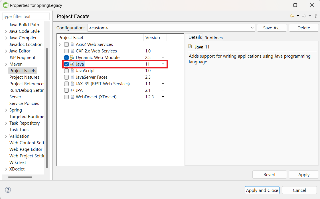 예) path를 /springlegacy에서 /로 수정시 웹 애플리케이션의 URL이 localhost:8080/springlegacy에서 localhost:8080/로 변경 됨.